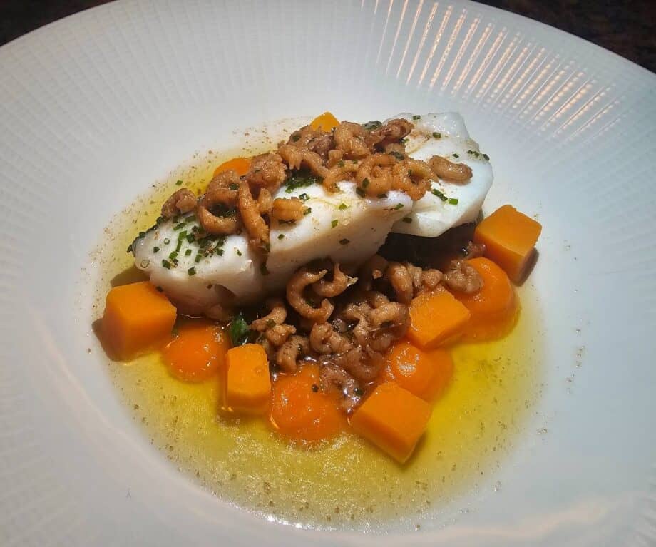 Our mains included the spiced monkfish with brown shrimps (usually with mussels but they were not available) and a seaweed velouté, and the steamed cod with autumn squash, potted shrimp butter and pumpkin seeds. Next time I’d love to try the venison cottage pie.